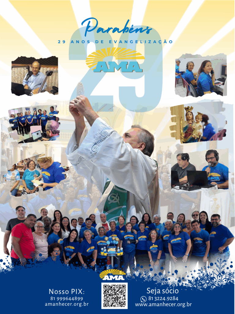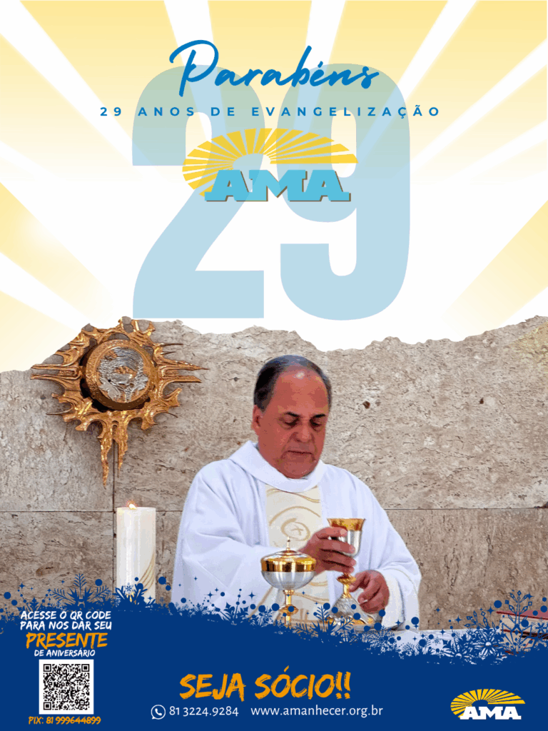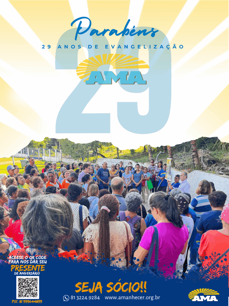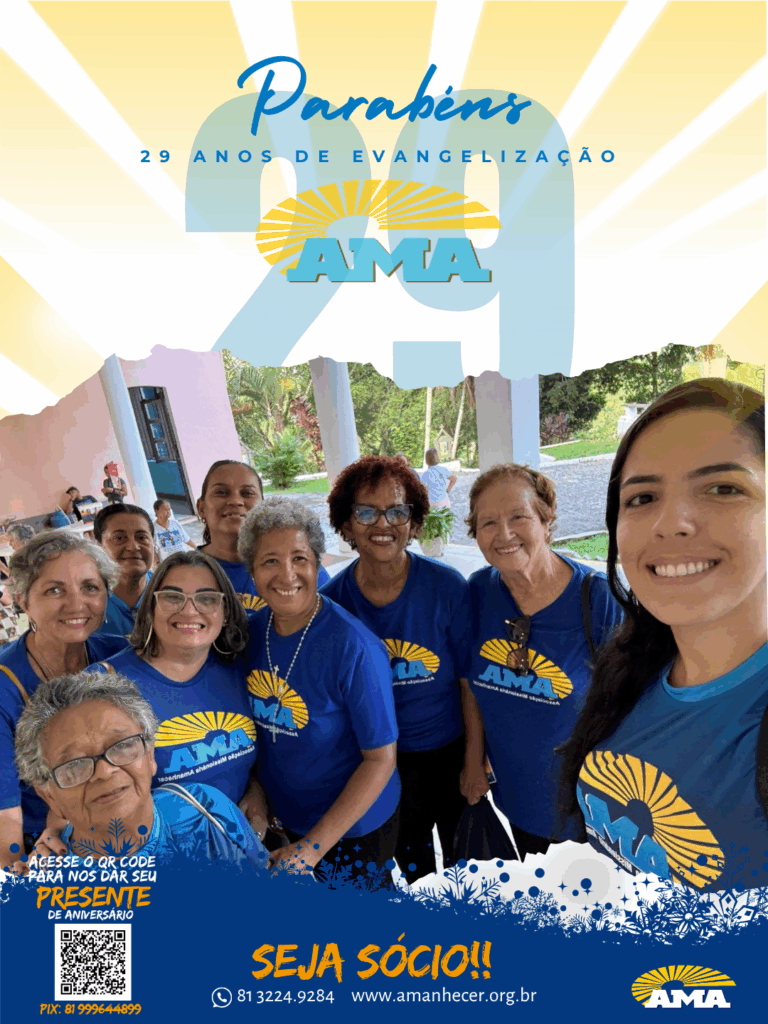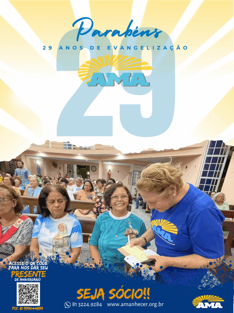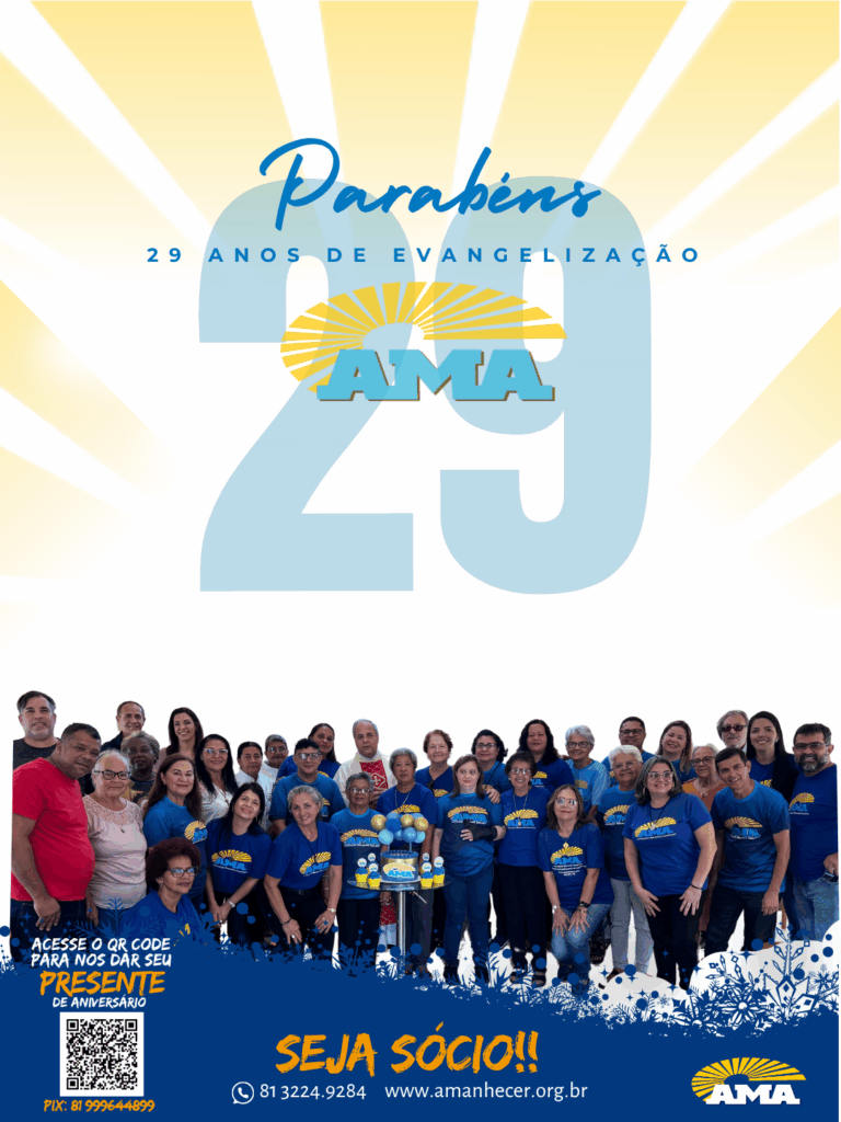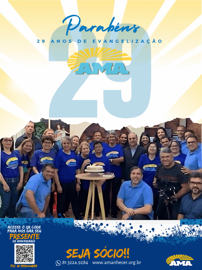 Os 29 anos de história na evangelização da Associação Missionária Amanhecer – AMA serão celebrados ao longo do mês de agosto. A campanha de aniversário começa no dia primeiro e terá seu ponto alto na quinta-feira, com a celebração da santa missa, transmitida ao vivo pela Rede Vida de Televisão.