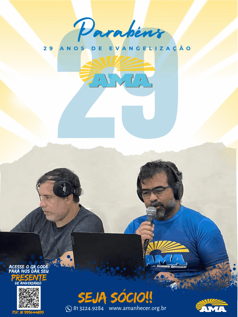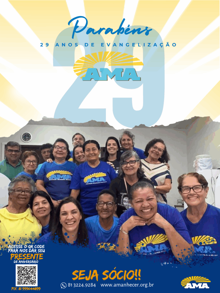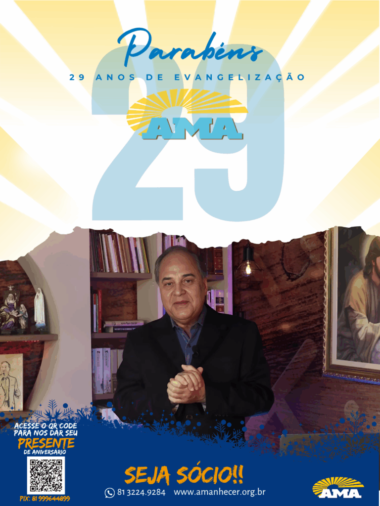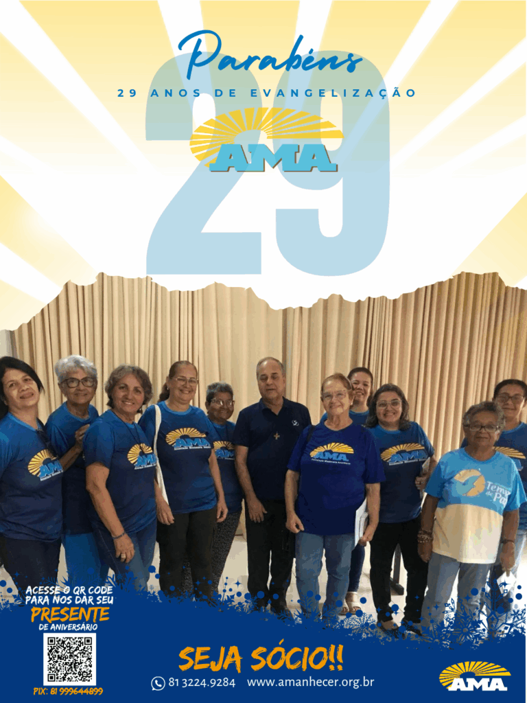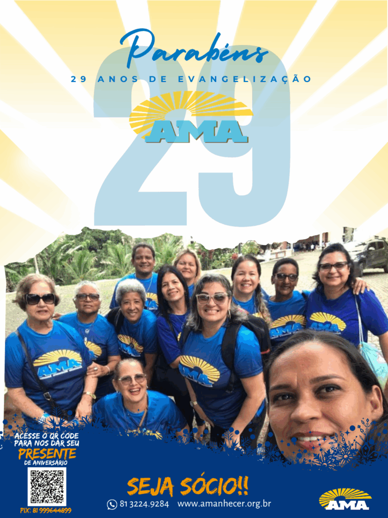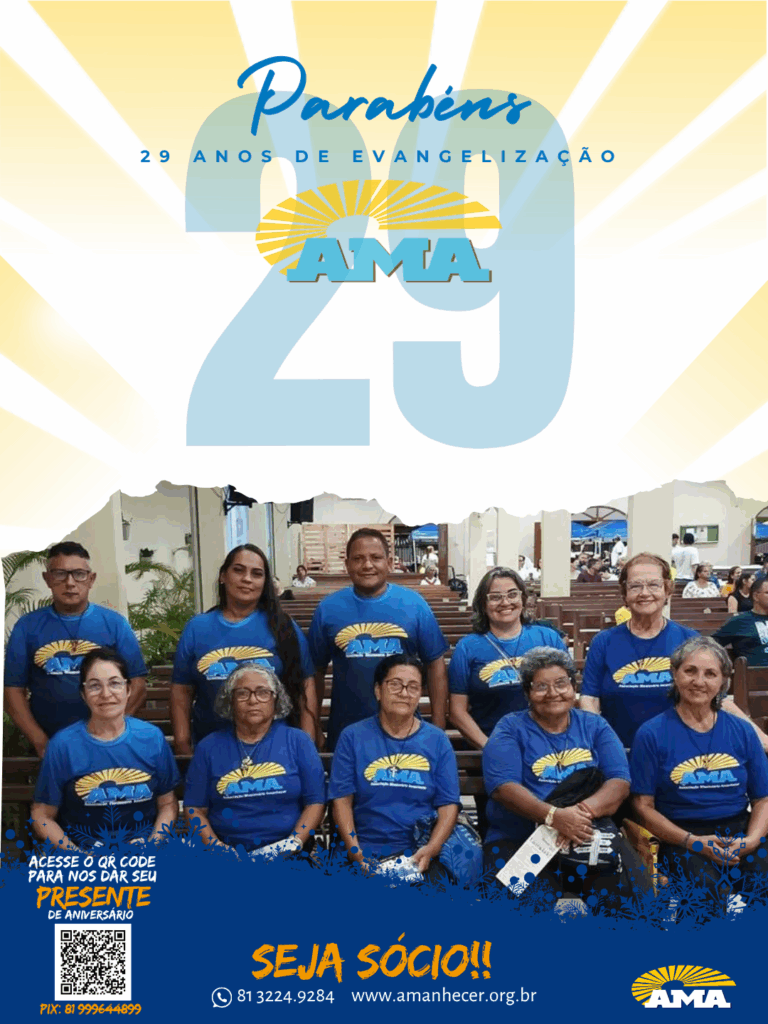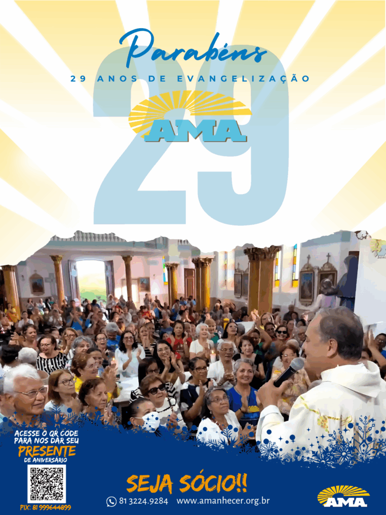 Os 29 anos de história na evangelização da Associação Missionária Amanhecer – AMA serão celebrados ao longo do mês de agosto. A campanha de aniversário começa no dia primeiro e terá seu ponto alto na quinta-feira, com a celebração da santa missa, transmitida ao vivo pela Rede Vida de Televisão.